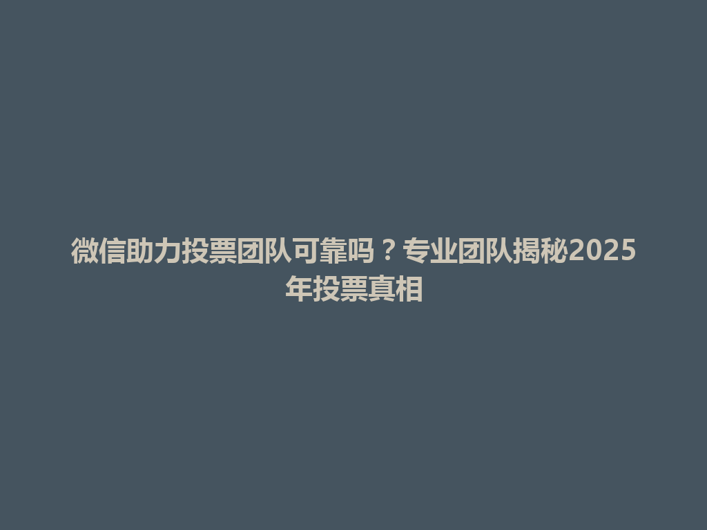 西湖区微信助力投票团队可靠吗?专业团队揭秘2025年投票真相